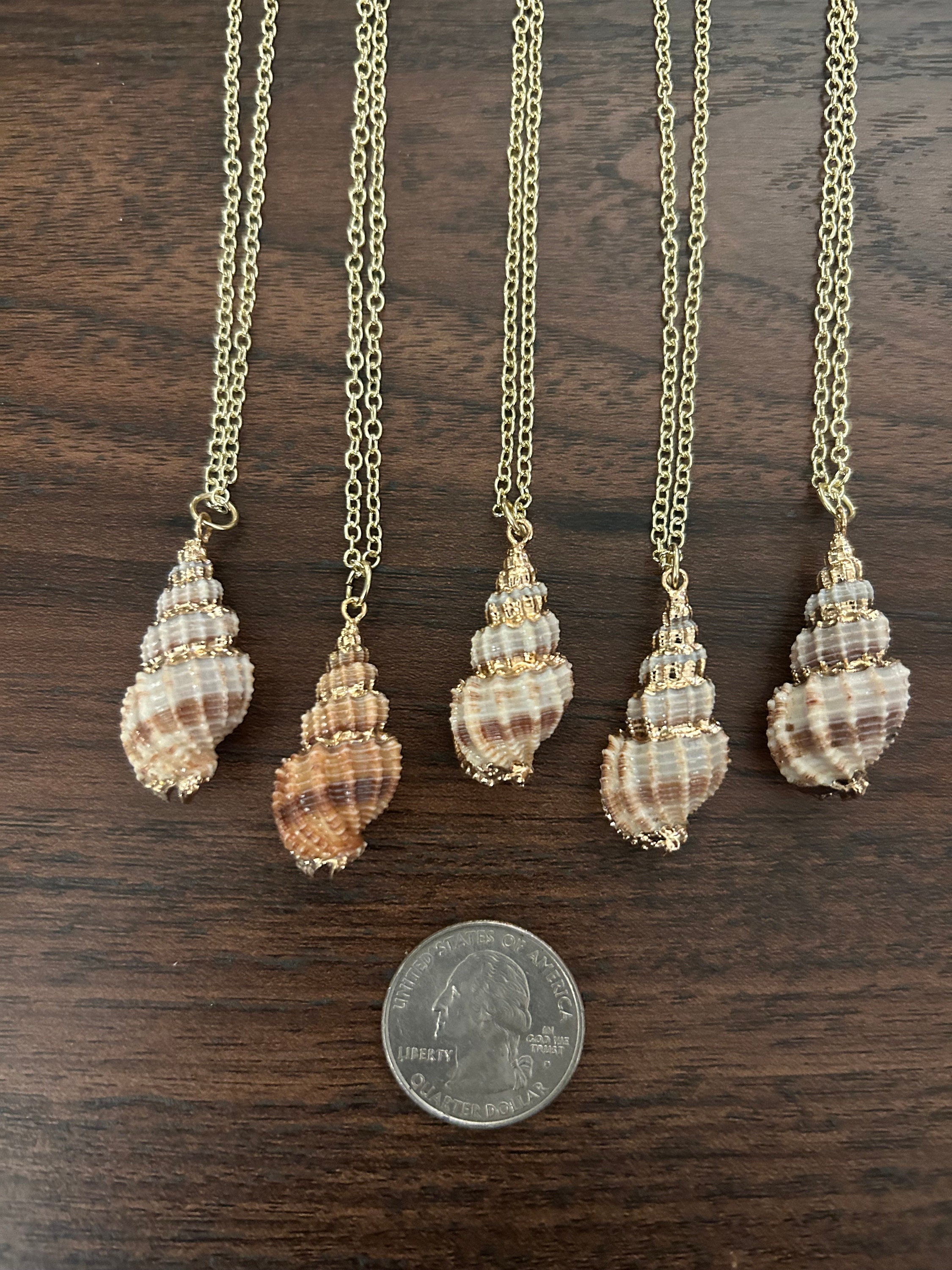 Multiple Pendants are pictured to shown slight variations between shells. Please keep in mind these shells are natural and may come in a slightly different natural color pattern than shown, or vary slightly in size.