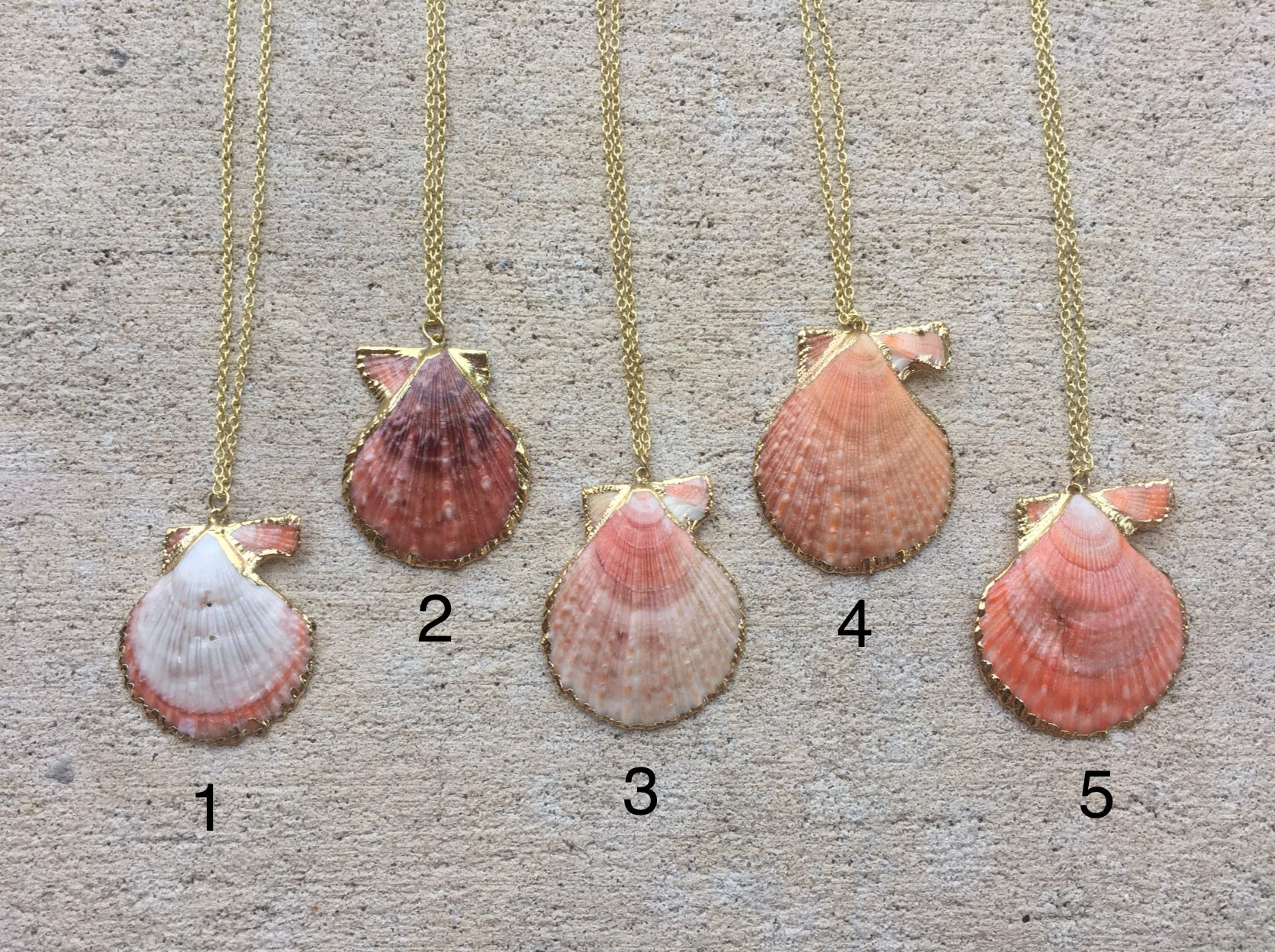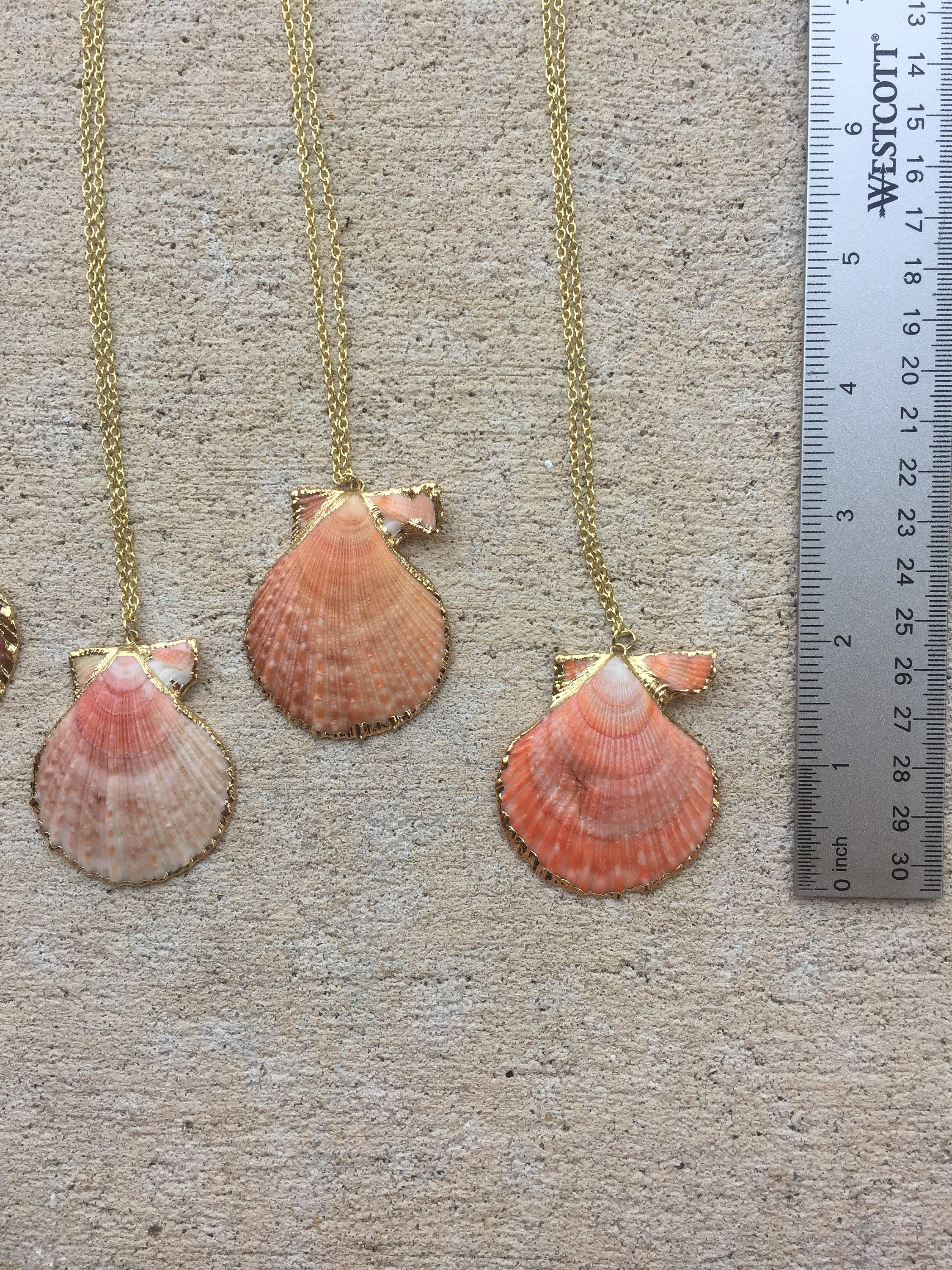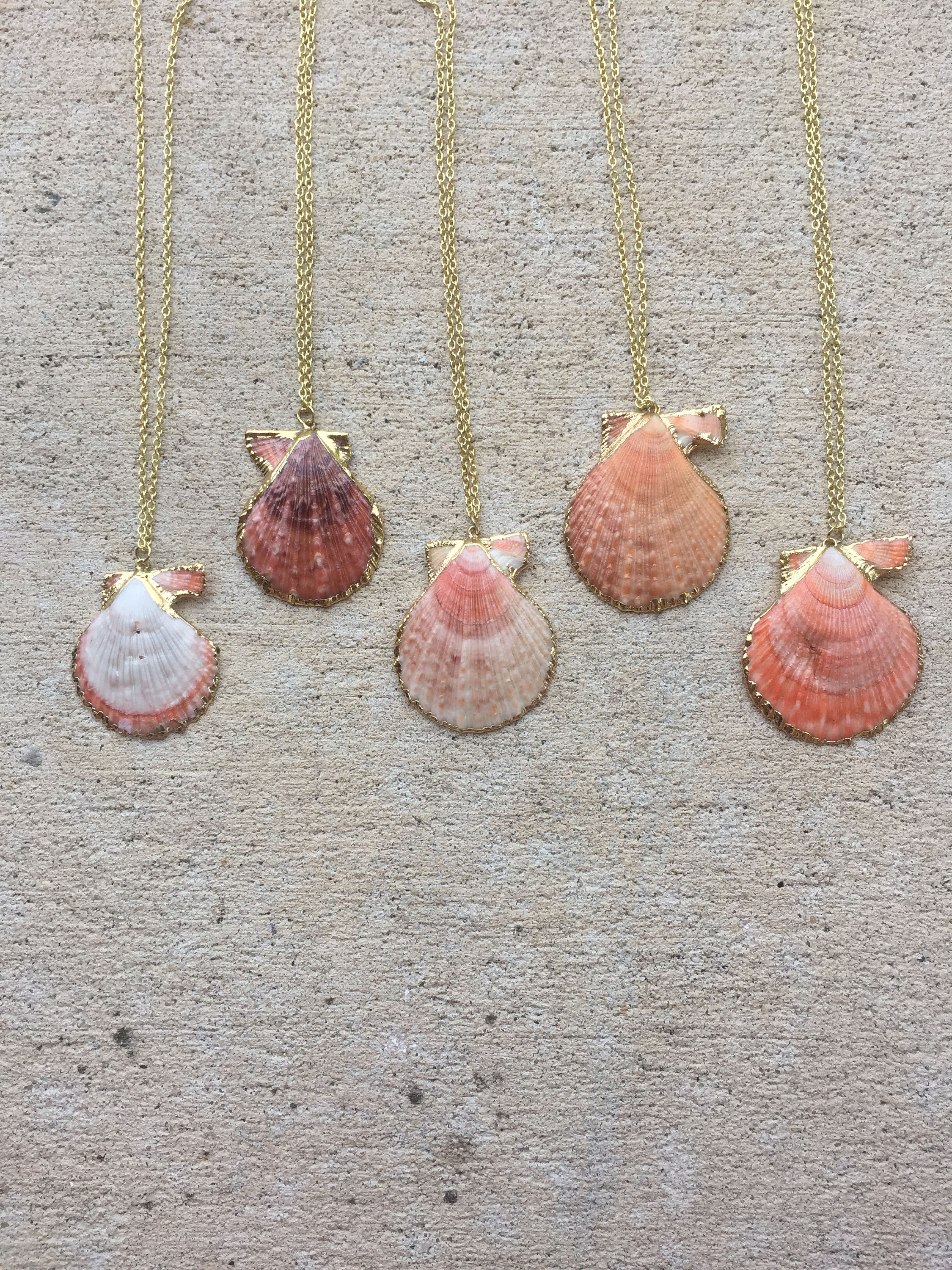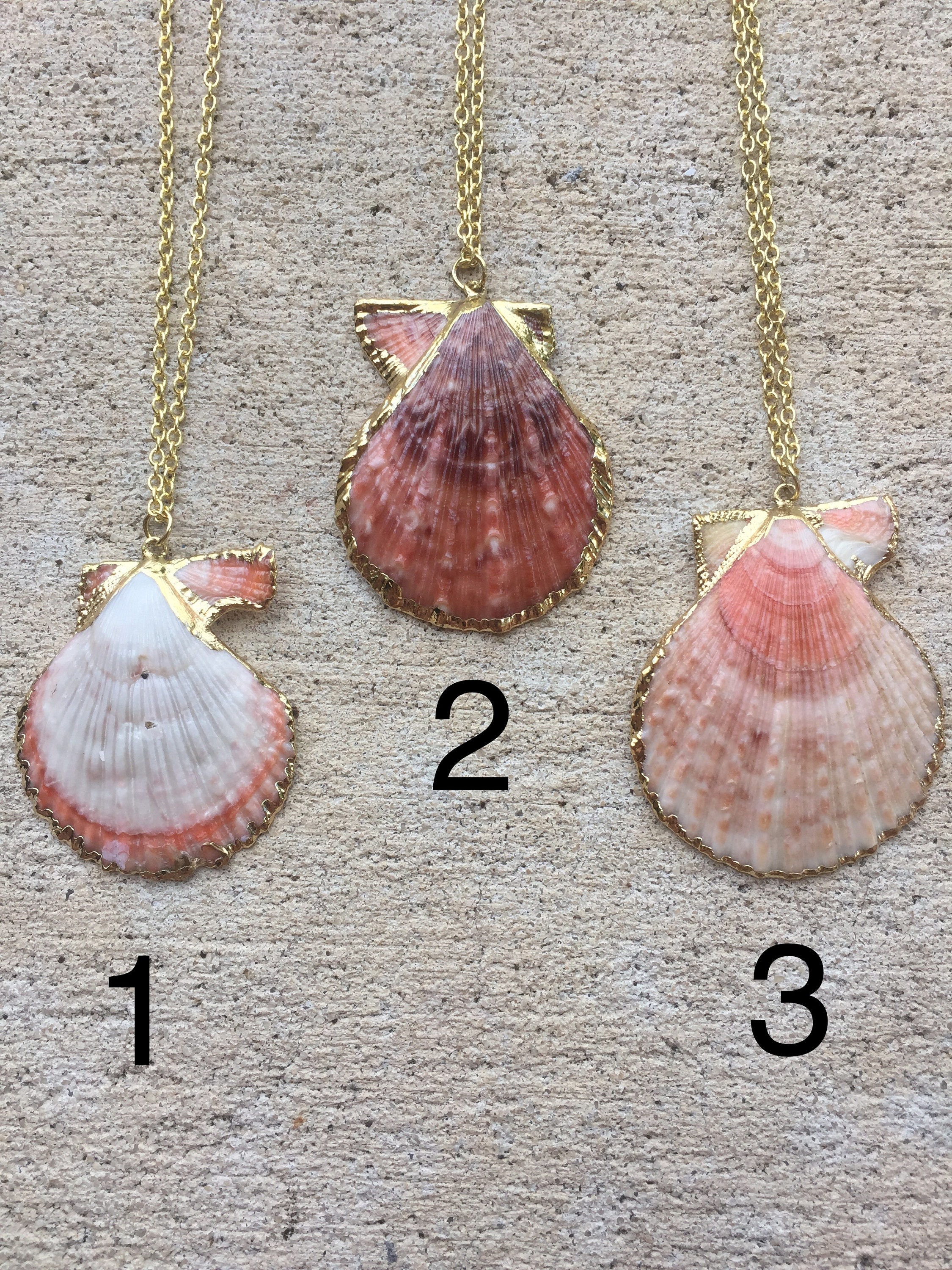 Similar Product: https://www.etsy.com/listing/501284462/salmon-pink-scallop-shell-necklace